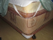 Check where bed wheels attach to the bed and where the dust cover is fastened to the ensemble base on each corner. Bed Bugs are known to congregate inside the wheel where it meets the base. If you suspect that Bed Bugs may be between the wheel and the mattress it is worth further investigation.